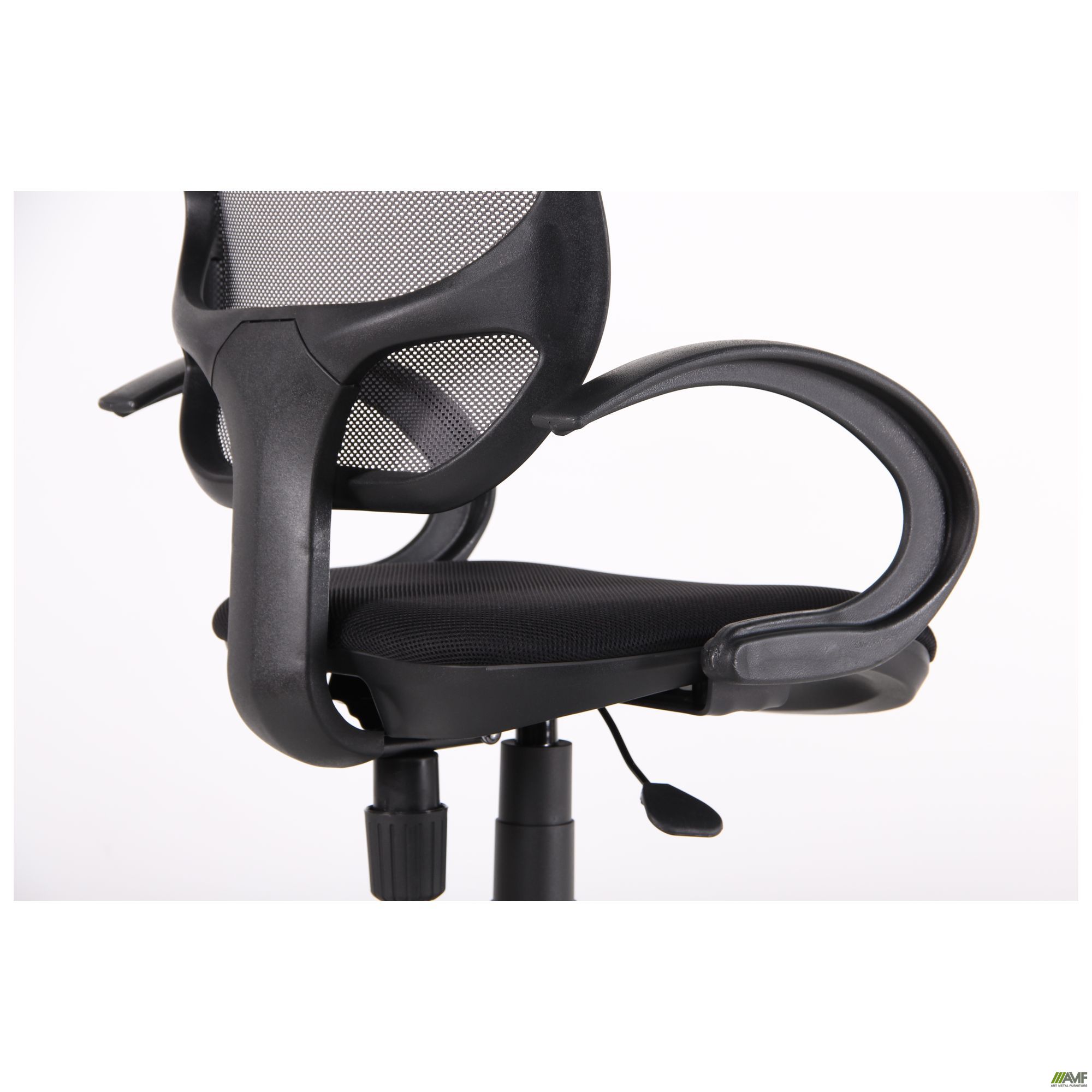 Данная модификация кресла Байт комплектуется подлокотниками АМФ-5 и прочными высококачественными пластиковыми элементами.
