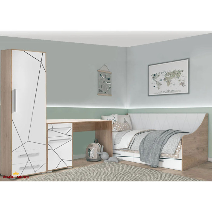 Ціна на сайті вказана за комплектацію: пенал 1Д2Ш, ліжко 1-сп 2Ш, стіл письмовий.
