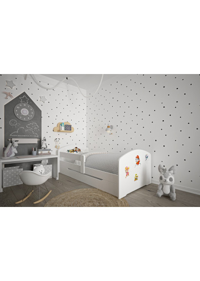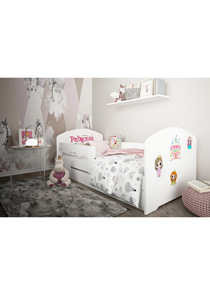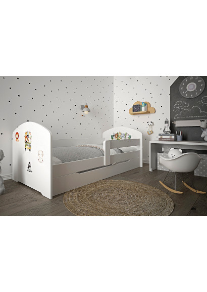Ліжко виготовлене з якісного та довговічного матеріалу, що забезпечує його стійкість та надійність, оснащене захисним бортиком для запобігання падіння та висувною шухлядою на коліщатах, що дозволяє легко зберігати речі під ліжком і зекономити ще більше місця.