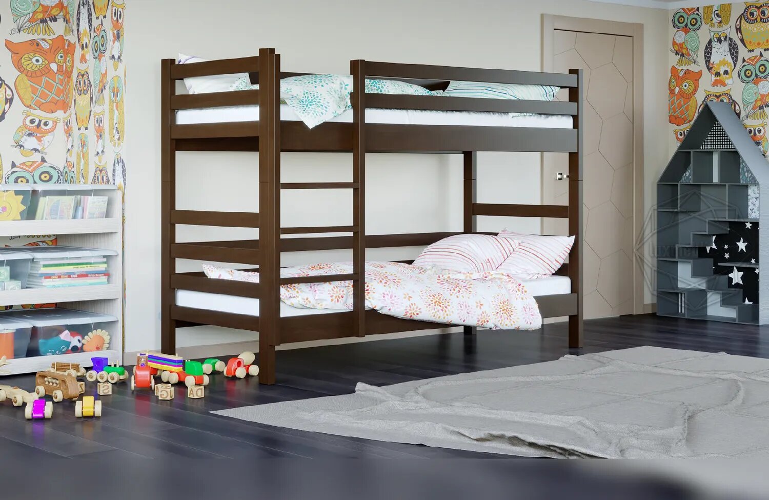 Кровать двухъярусная Засоня(Соня) - это замечательная деревянная кровать с удобной и крепкой лесенкой, которую по вашему желанию можно расположить слева или справа. Такая конструкция освободит значительное пространство в детской. Если со временем понадобится, то несложная трансформация позволит расположить две деревянные кровати отдельно в этой же или в двух разных комнатах. Кровать Засоня(Соня) изготовлена из натурального дерева — сосны, имеет надежную конструкцию, выполнена в простом универсальном дизайне, что дает возможность ей вписаться в любой интерьер.