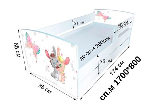 Всі ліжка йдуть у стандартному розмірі зі спальним місцем 1700*800мм, та з бортиком в комплекті. Увага! Ліжко монтується на будь яку сторону.