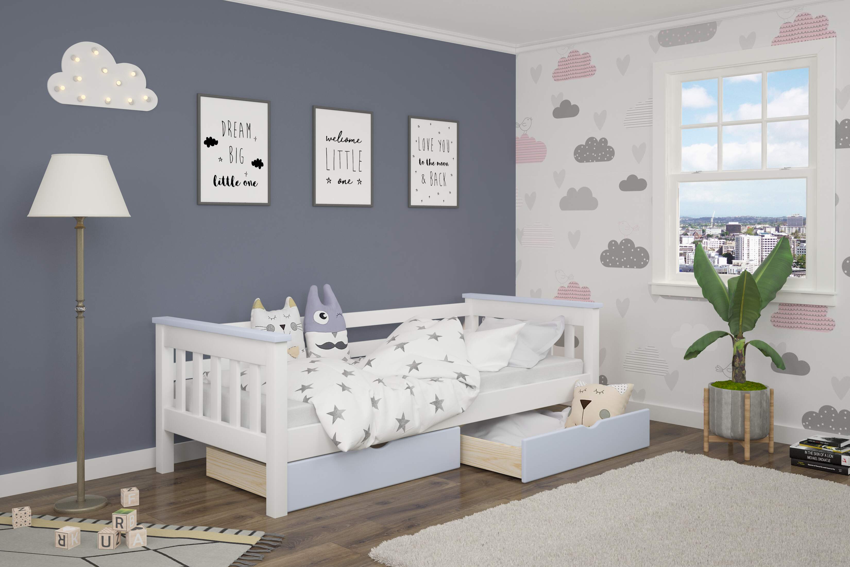 до довжини спального місця Висота: 720 мм Ліжко може окремо комплектуватися ящиками |