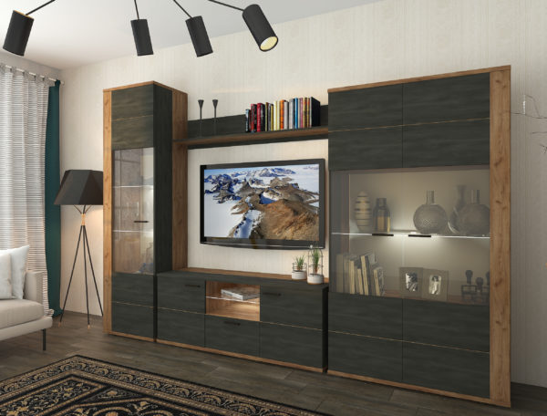 В комплект входять - пенал 1д, пенал 2д, тв тумба 2д1ш.