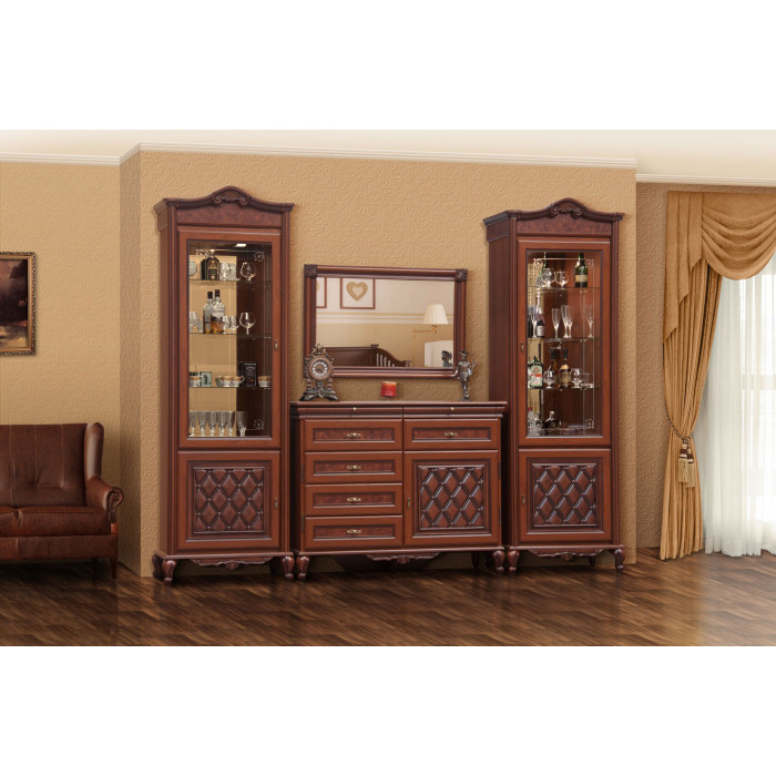 Ціна на сайті вказана за комплектацію: вітрина 1Д - 2 шт, комод 2Д 1.7.