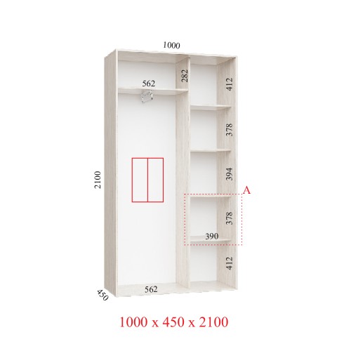 Шкаф-купе 100х45х210 СТАНДАРТ - 2 фасада