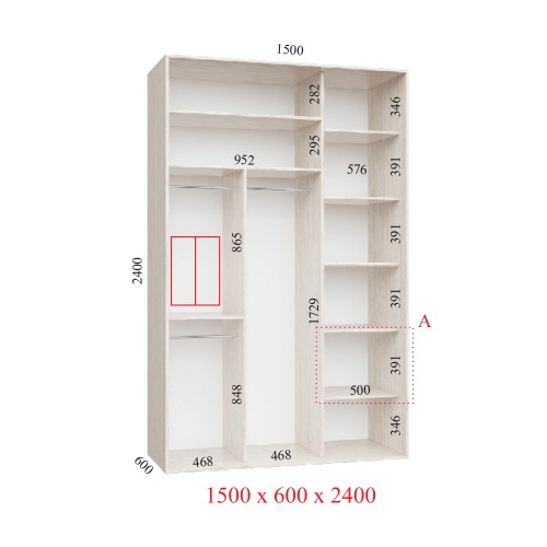 • Шкаф-купе 150х60х240 ЛЮКС 2 фасада