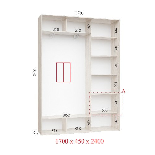 Шкаф-купе 170х45х240 СТАНДАРТ - 2 фасада
