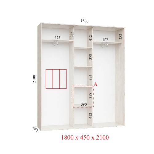 Шкаф-купе 210х45х210 КОМФОРТ - 3 фасады