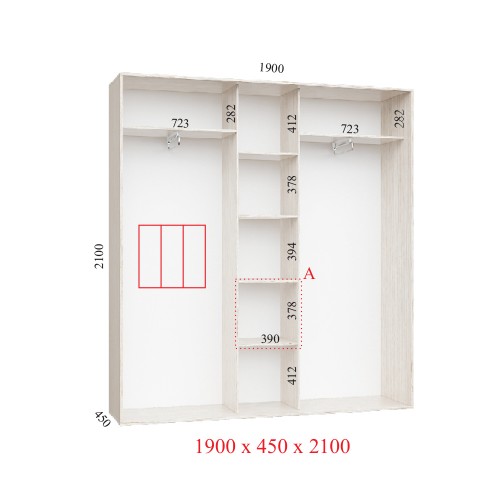Шкаф-купе 210х45х210 КОМФОРТ - 3 фасады