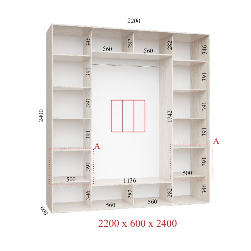 Шкаф-купе 220х60х240 УЛЬТРА - 3 фасады