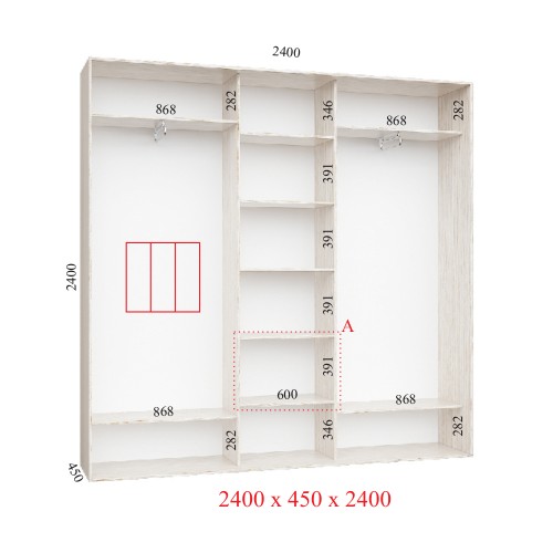 Шкаф-купе 240х45х240 СТАНДАРТ - 3 фасады