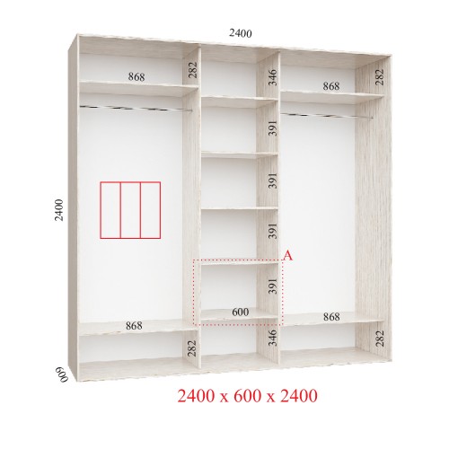 Шкаф-купе 240х60х240 СТАНДАРТ -3 фасада