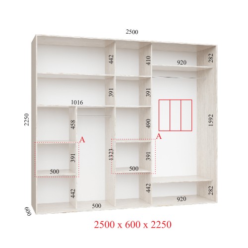 Шкаф-купе 250х60х225 ЛЮКС 3 фасады
