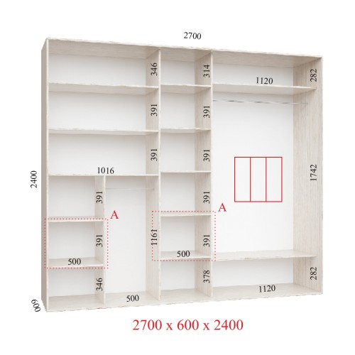 Шкаф-купе 270х60х240 ЛЮКС 3 фасады