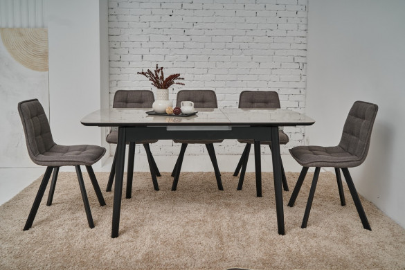 Керамический стол TM-76 калакатта мрамор (серая керамика) + чёрный