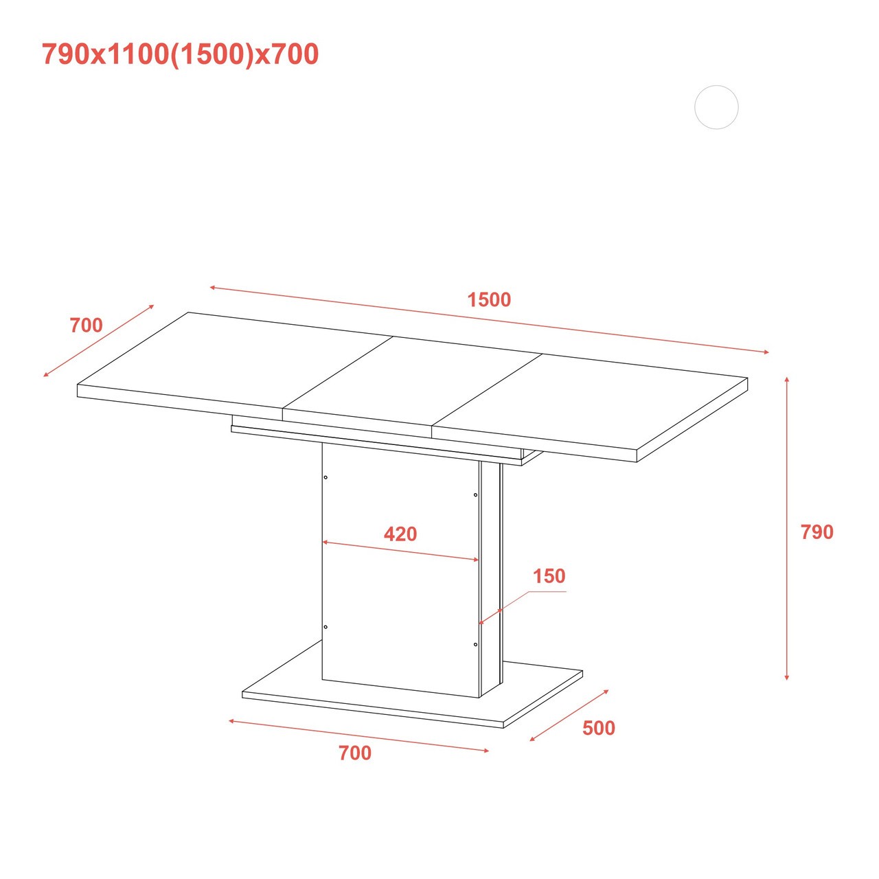 | Довжина столу в розкладеному стані | 1500 мм |