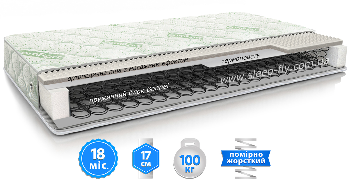 Високоеластичний, щільний, нетоксичний та довговічний матеріал спеціально створений для покращення ортопедичної підтримки вашого хребта. Завдяки унікальній формі ортопедична піна має корисні масажні властивості, сприяє правильному розподілу тиску на різні ділянки тіла, знімає навантаження з судин, покращує кровообіг та загальне самопочуття під час відпочинку.