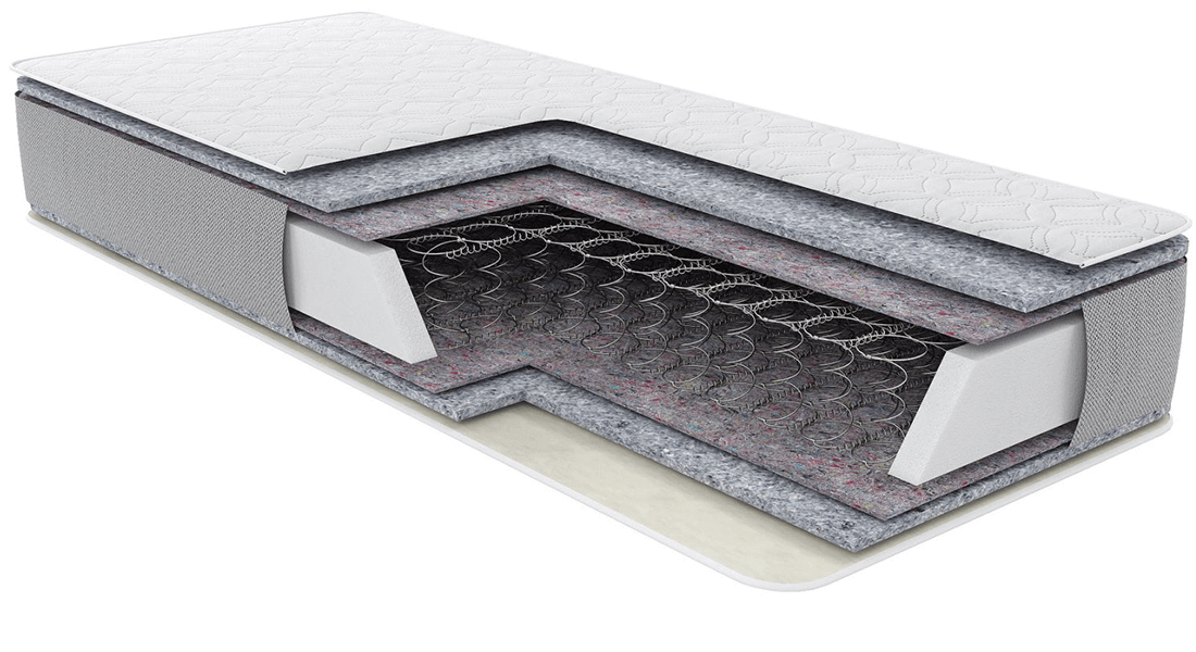 Классический пружинный блок. Сочетает базовый комфорт и невысокую стоимость. Каждая пружина блока состоит из пяти витков, и благодаря форме песочных часов пружины не соприкасаются, а значит, вам не мешает спать неприятный скрип или трение пружин друг о друга. При этом пружины взаимодействуют одна с другой. Поэтому при возникновении нагрузки на матрас сжимаются как пружины, которые непосредственно оказались под давлением, так и расположенные рядом.