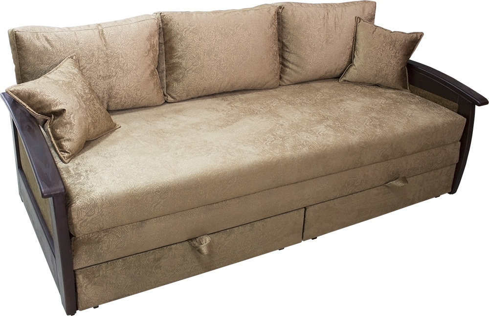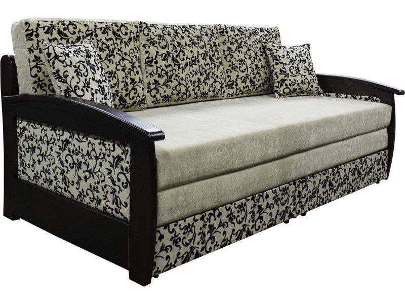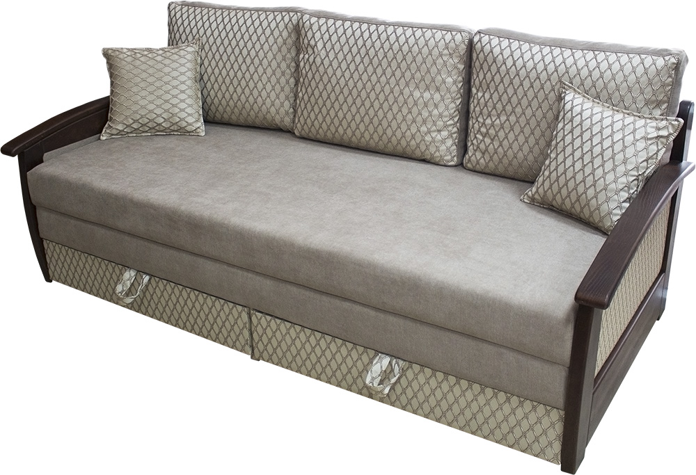 Купить диван Лорд-Д Комфортный и практичный диван Лорд-Д очень легкий в эксплуатации. Деревянные подлокотники добавляют изюминку и подчёркивают стиль обладателя дивана. Система раскладки позволяет без каких-либо особых усилий трансформировать его спальное место, а матрасы в разложенном виде не имеют щелей. Идеальный вариант для ежедневного использования. Есть две вместительные ниши для постельного белья. Характеристики: Вид трансформации:Выкатной. Количество мест:2 Наполнитель:Верхний и нижний матрасы - пружинный блок + пенополиуритан. Материал:ткань, кожзам или кожа. Габаритные размеры:в810 х ш2170 г1070 мм. Спальное место:2000 х 1950 мм. Ниша для постельного белья:Есть. Модель изготовлена из экологически чистых материалов. Сертификаты и гигиенические выводы предоставляем по требованию. Гарантия на мебель- 18 месяцев. Возможно изготовление в индивидуальных размерах.