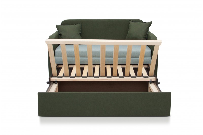 В комплект входить дві подушки розміром 40*40мм. Також є ніша для білизни.