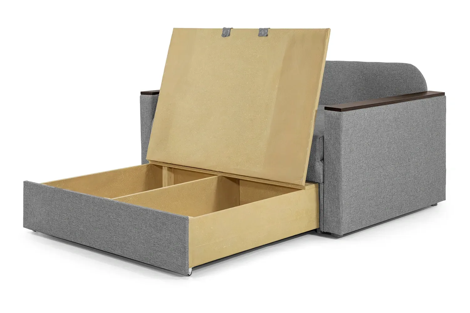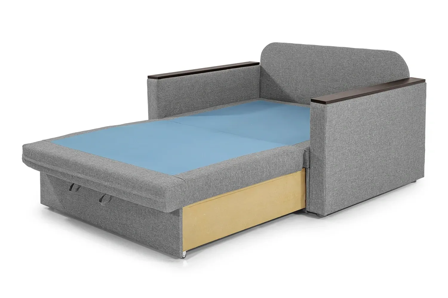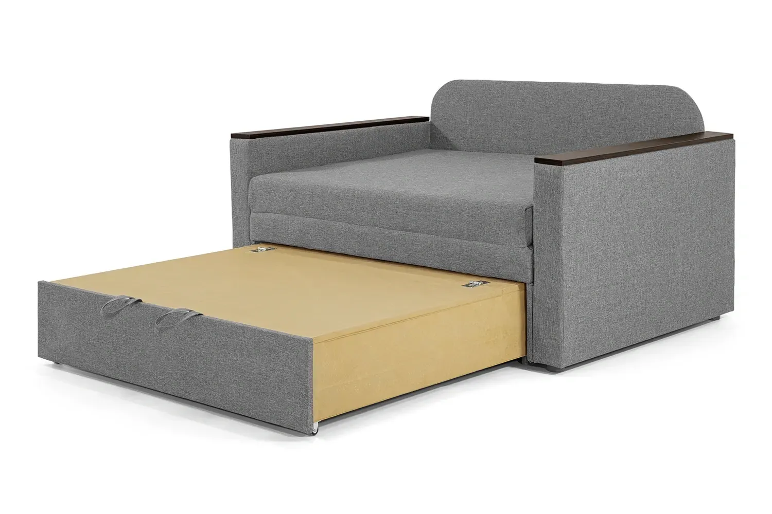 Швидко перетворюється на ліжко, легко складається і розкладається, з цим впорається навіть дитина. Диванні подушки створюють додатковий комфорт. Тверді підлокітники використовуються як зручні полиці. Розміщуйте Ваш напій поруч без ризику пролити його.
