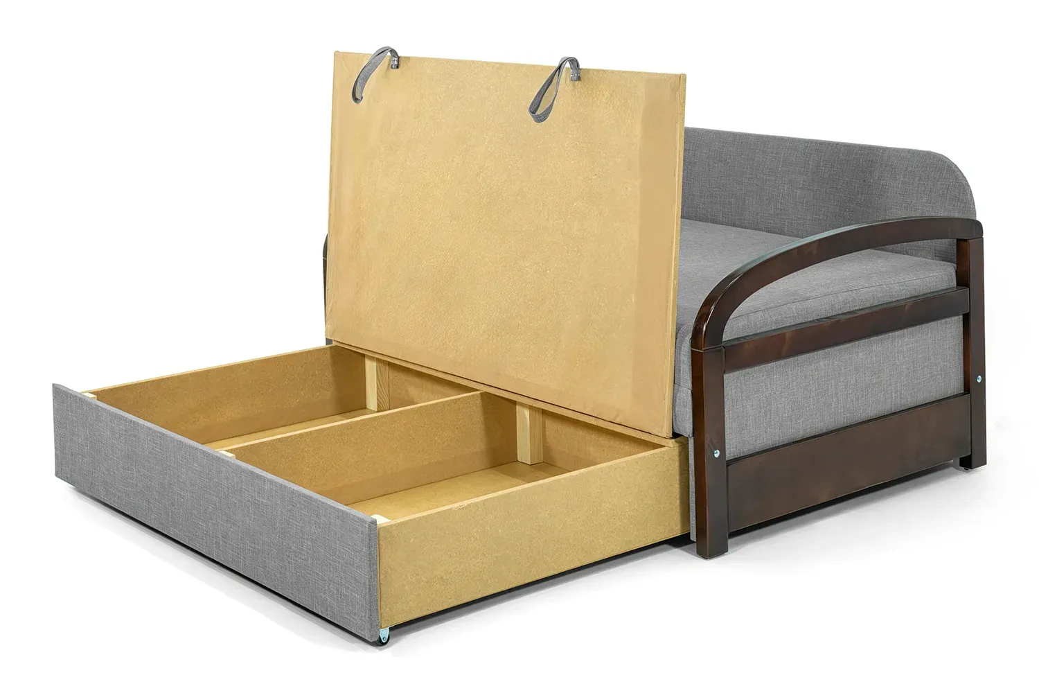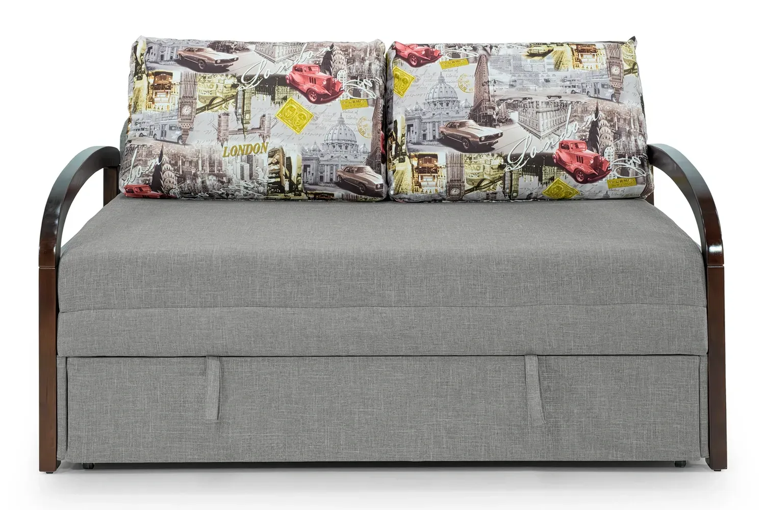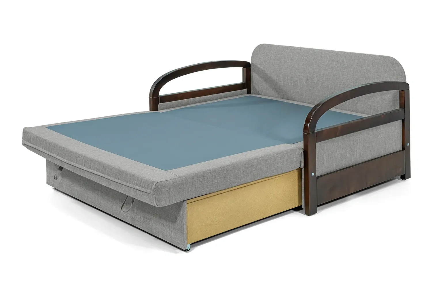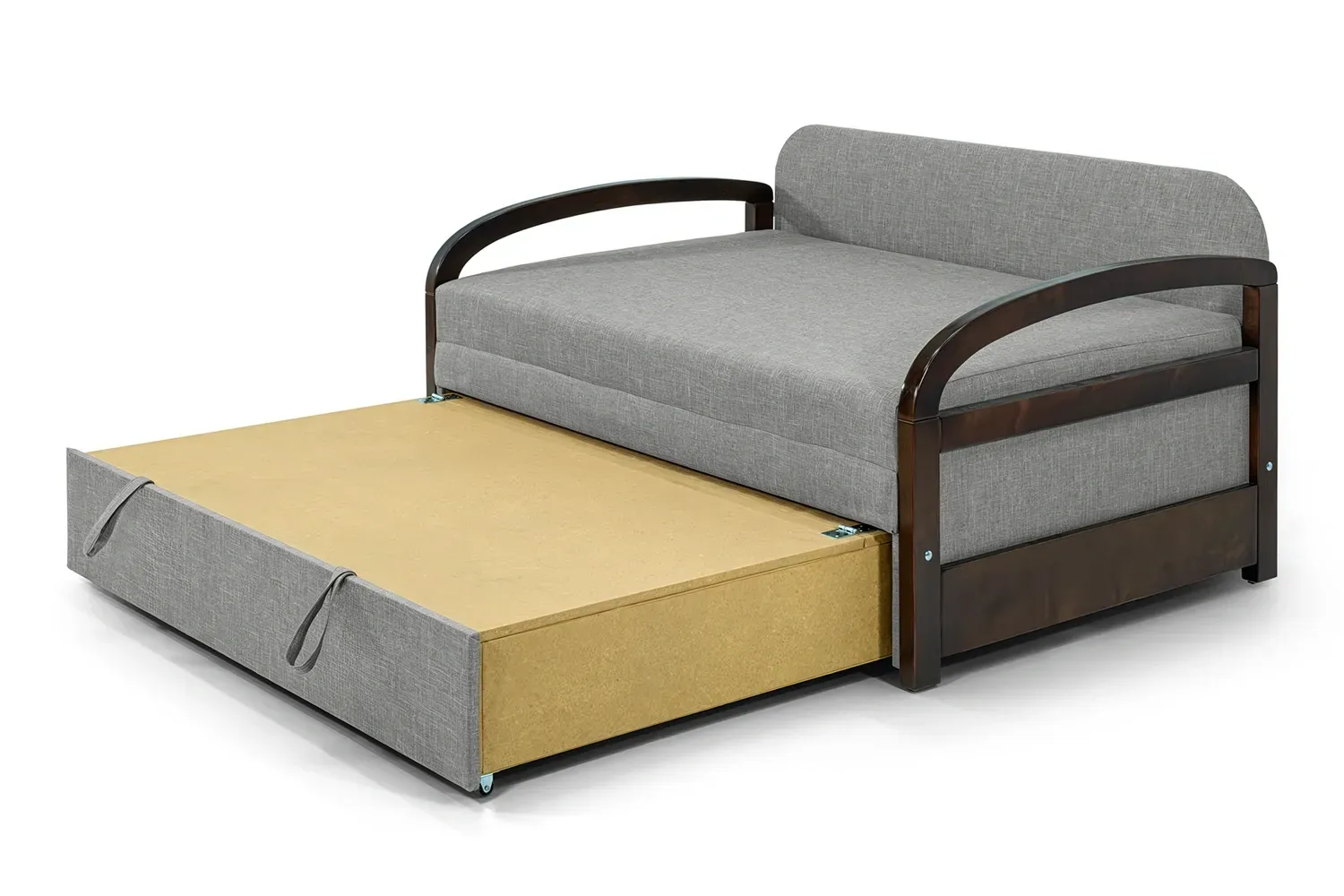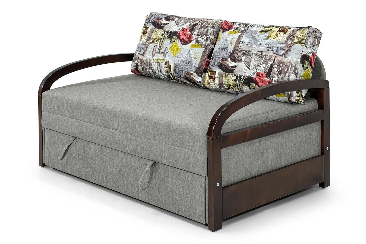 Поєднує в собі стиль та функціональність, підходить для сучасного житла. Його заокруглені підлокітники з темного дерева додають елегантності. Викатний механізм трансформації забезпечує зручність використання.