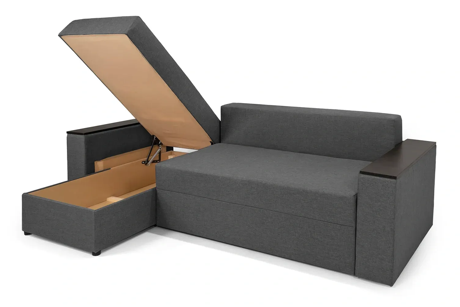 Цей кутовий диван підходить для тих, хто цінує комфорт та функціональність. Він стане чудовим вибором для вітальні, забезпечуючи зручне місце для відпочинку та міцного сну.