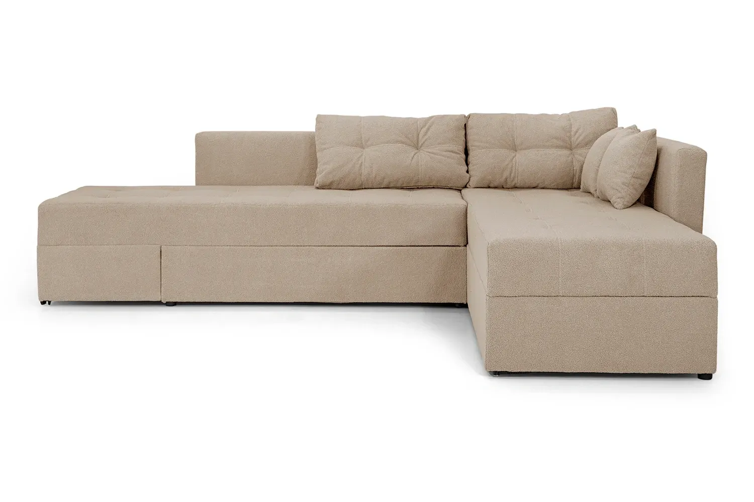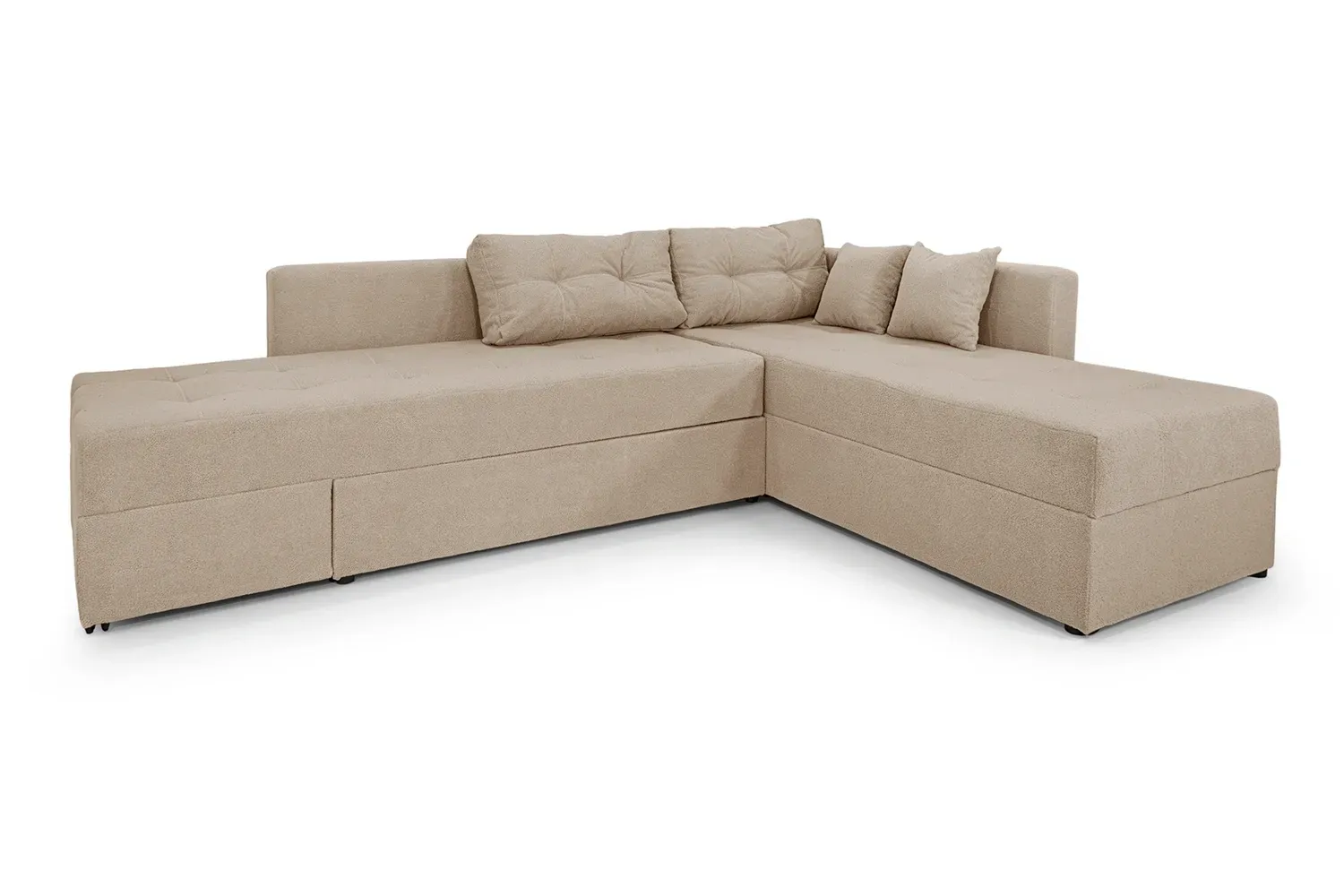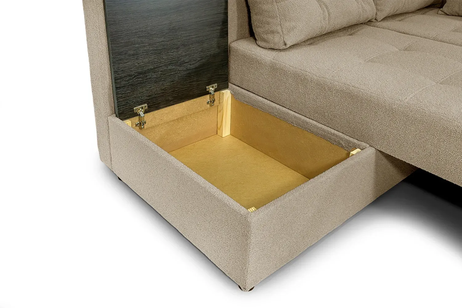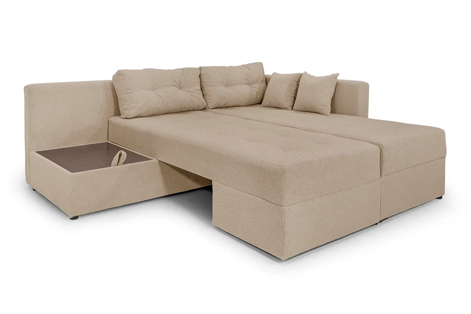 Він забезпечить Вас комфортним спальним місцем для щоденного використання. Сучасний і красивий, він надасть стильного вигляду вашій оселі. Кутовий диван стане родзинкою домашнього декору. Він має приховані ніші для зберігання, а в розкладеному вигляді - має зручний приліжковий столик для речей з додатковою нішею.