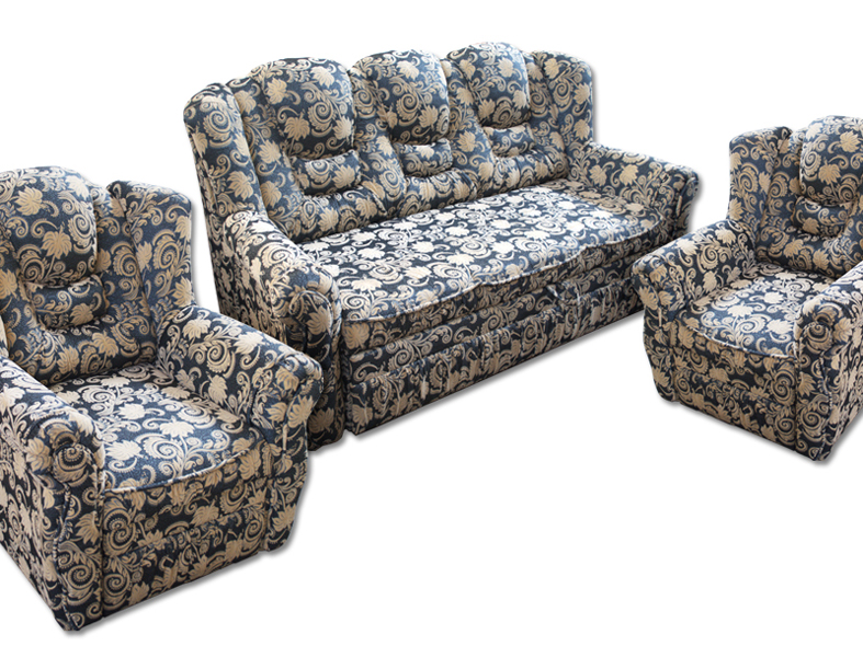 Мягкий уголок Князь (диван + 2 кресла) Мягкий уголок Князь представляет собой комплект, стостоящий из классического дивана Князь с раскладным механизмом Верона и двух кресел. Комфортный и респектабельный диван будет комфортным и надёжным местом для сна, т.к. в составе матраса находятся ламели. Характеристики: Комплект:Диван + 2 кресла. Вид трансформации:Верона. Количество мест:2 Наполнитель:Змейка + пружинный блок, пенополиуритан. Материал:ткань, кожзам или кожа. Диван Габаритные размеры:в1070 х ш1950 х г1020 мм. Спальное место:1830 х 1400 мм. Кресло Габаритные размеры:в1100 х ш930 х г1020 мм. Модель изготовлена из экологически чистых материалов. Сертификаты и гигиенические выводы предоставляем по требованию. Гарантия на мебель- 18 месяцев. Возможно изготовление в индивидуальных размерах.