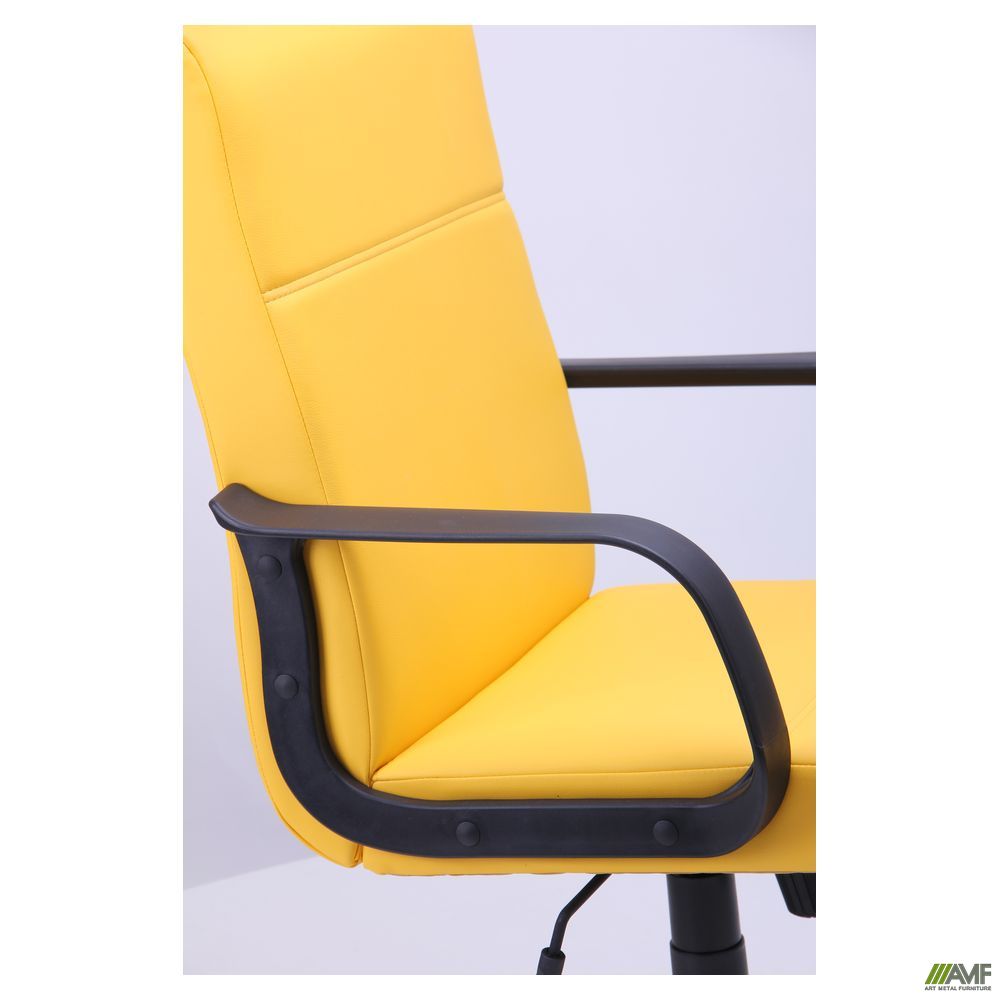 Между сиденьем и спинкой кресла отсутствует подвижное соединение, что делает конструкцию монолитной. Для обивки модели используется искусственная кожа Неаполь черного цвета. Она устойчива к повреждениям и воздействию высокой температуры, влаги и солнечных лучей.
