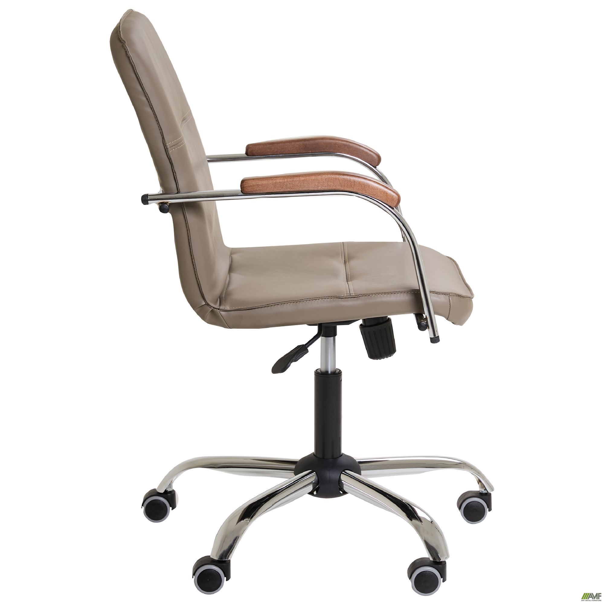 Данная модификация кресла Самба изготавливается без канта, на роликах, из каркаса цвета хром, с деревянными подлокотниками из массива бука.