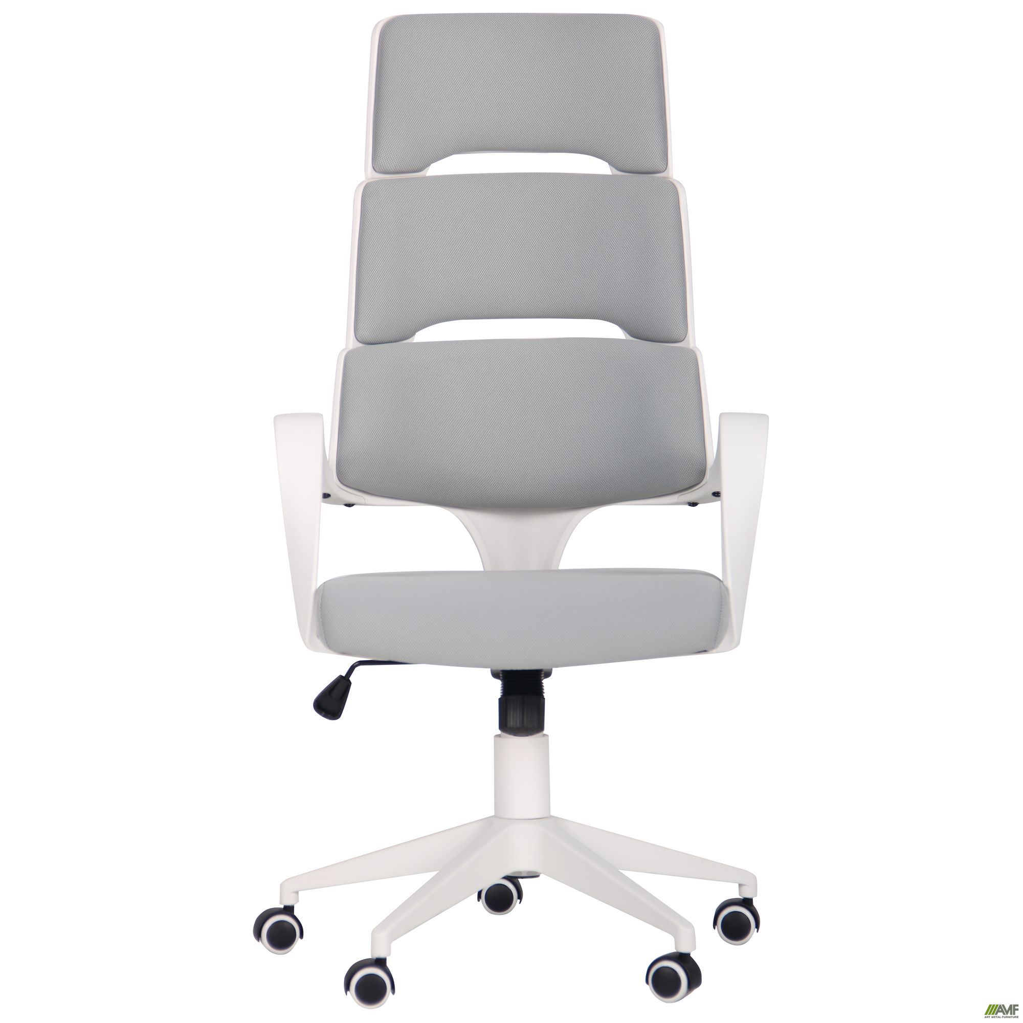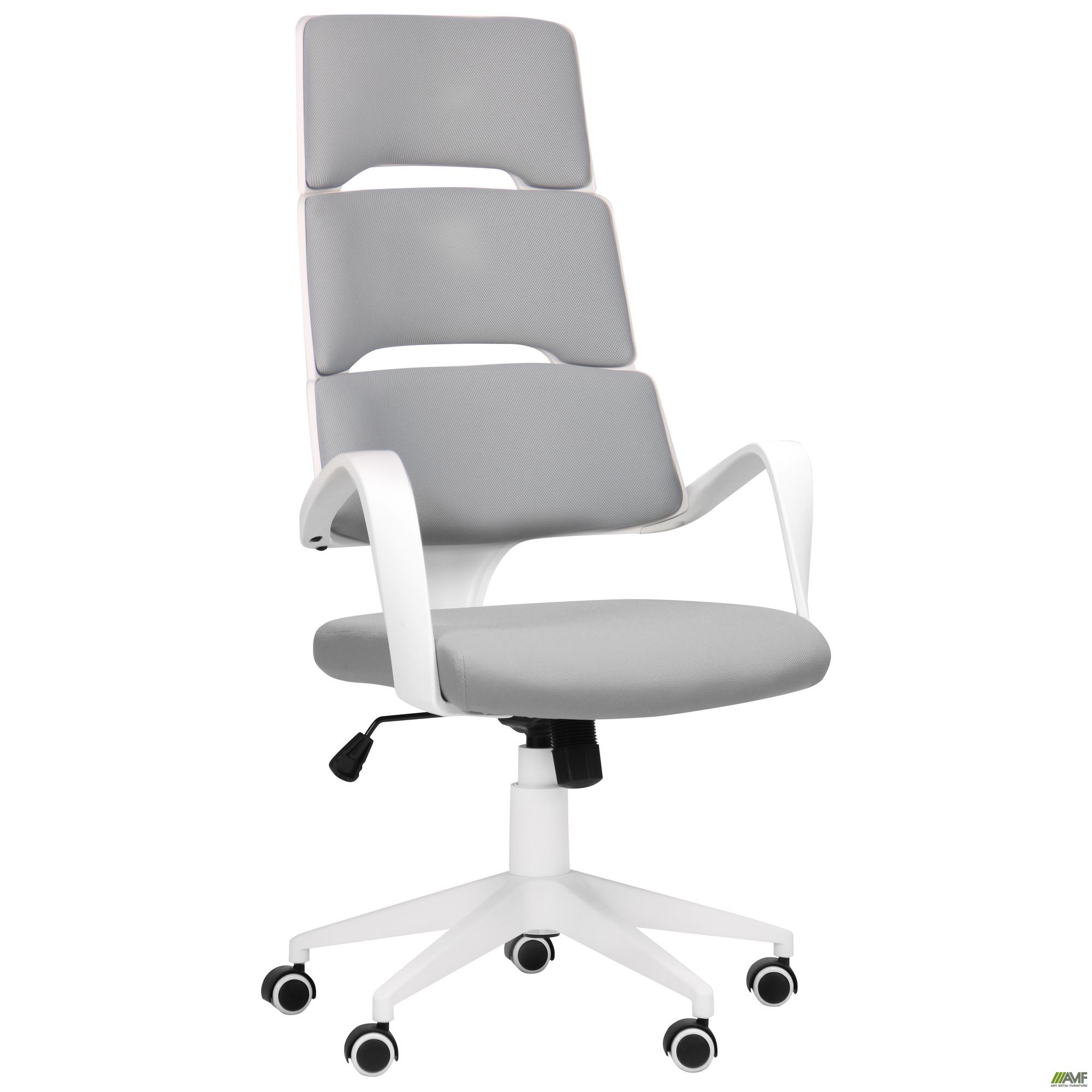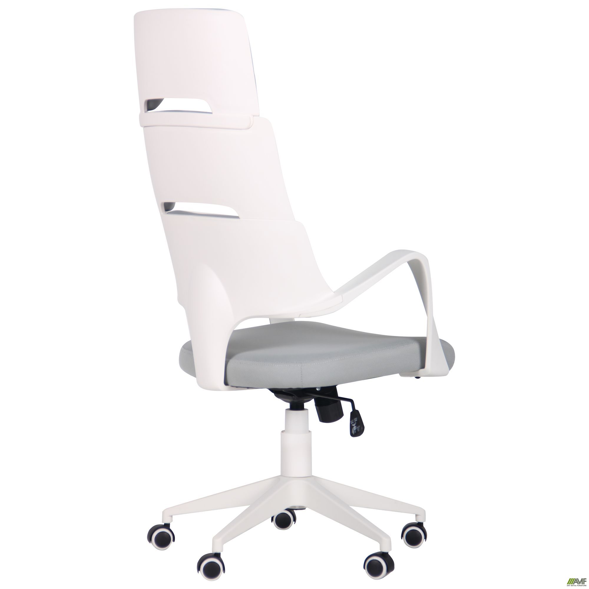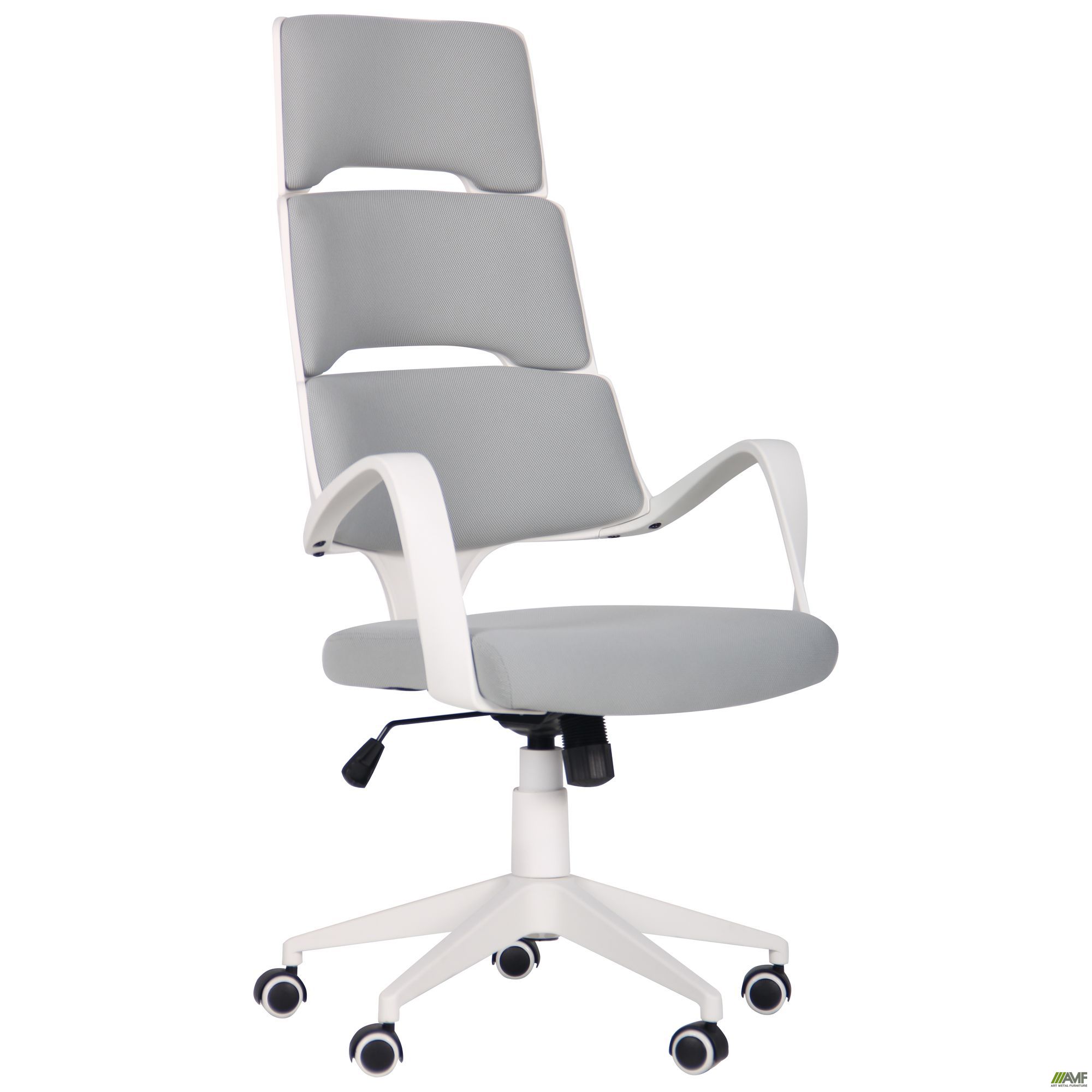 Современное офисное кресло AMF Spiral имеет легкую конструкцию и подходит для офисного или домашнего кабинета. Его отличительной чертой является оригинальный дизайн. Оно прекрасно сочетает эргономику и практичность материалов, что позволяет оформлять помещение с использованием современных тенденций. Необычная спинка с прорезями, изогнутые подлокотники и оригинальные цветовые решения придают модели определенный шарм. Спинка кресла повторяет изгибы спины и обеспечивает отличную поддержку. В качестве обивки используется прочная износостойкая ткань, которая надолго сохранит свою презентабельность. Она хорошо пропускает воздух, приятна на ощупь, что позволяет чувствовать себя комфортно на протяжении всего рабочего дня. Каркас изготовлен из прочного матового пластика. Большая устойчивость достигается пятилучевой формой крестовины. Ролики обеспечивают креслу максимальную мобильность и удобство перемещения.