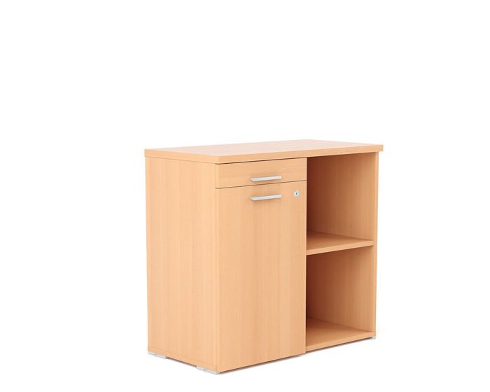 Приставная тумба MN433H комплектуется распашным фасадом, ящиком для канцтоваров (содержит пластиковый лоток) и двумя открытыми полками. Такая тумба сэкономит место на рабочем столе и позволит разместить документацию и канцелярские принадлежности. Топ тумбы изготовлен из ДСП толщиной 25 мм с кромкой ПВХ 2 мм , корпус - из ДСП 18 мм с кромкой ПВХ 1 мм. Модель обрудована замком и металлической ручкой. Предназначена для размещения с левой стороны. Размер изделия (ШхГхВ), мм: 800х412х750.