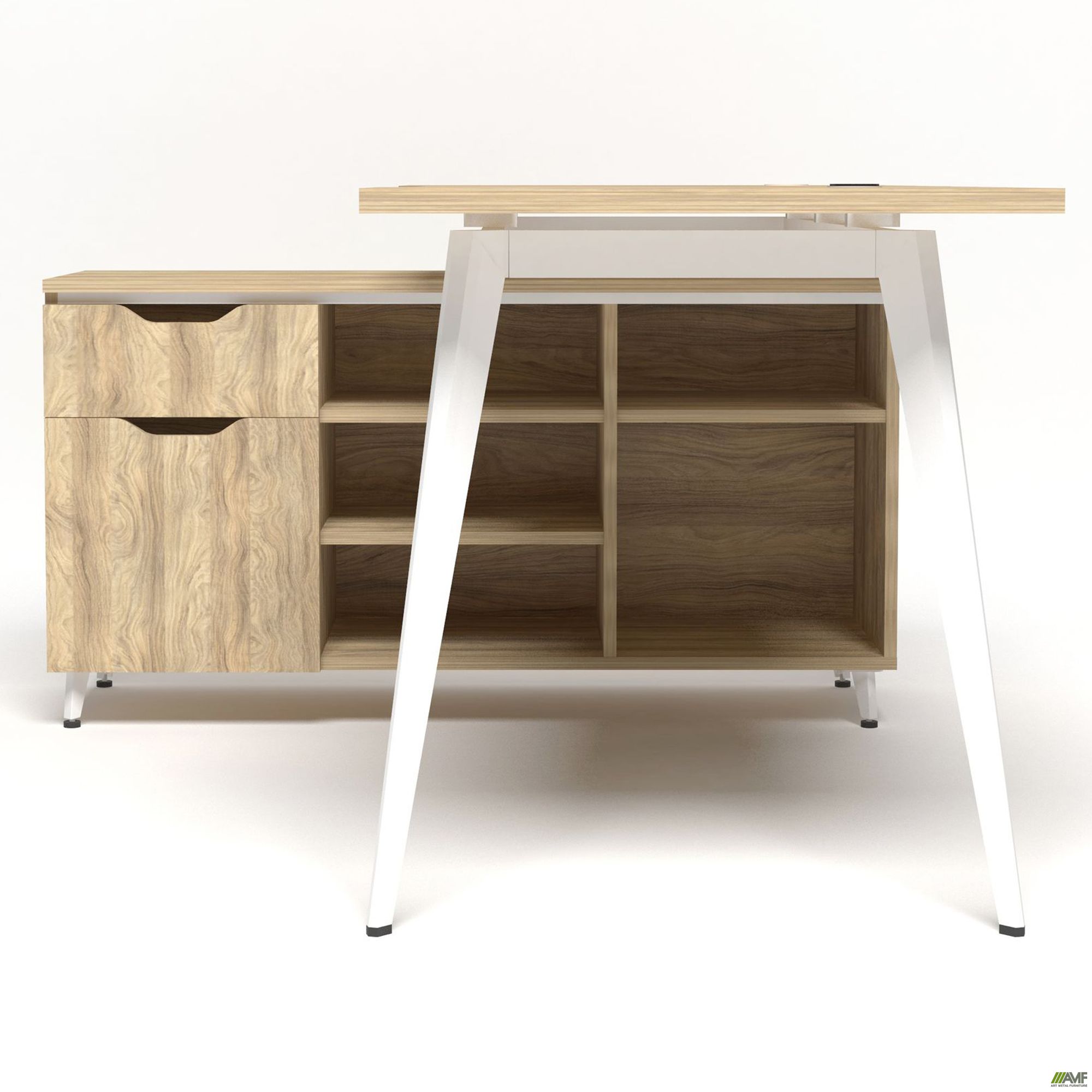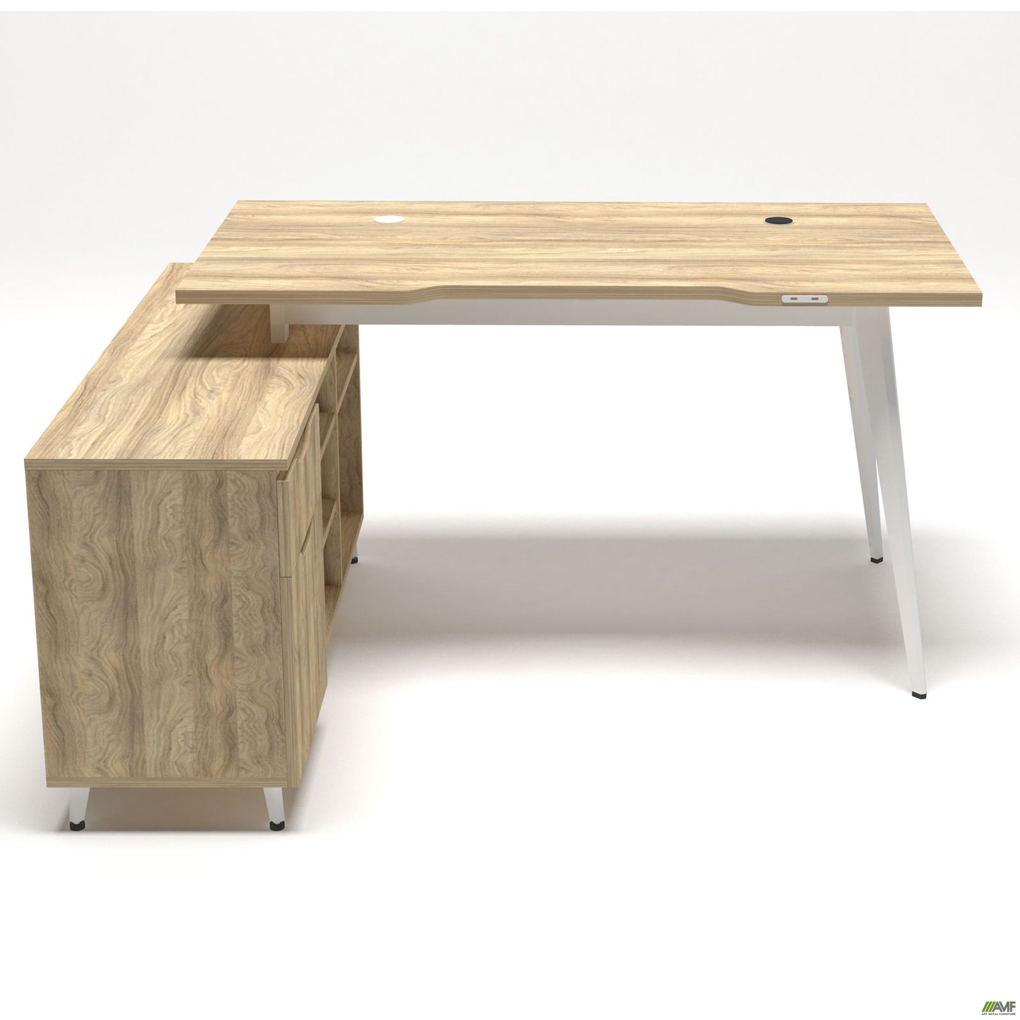 Дельта – это современная и стильная линейка созданная для нестандартных офисных пространств. Для того чтобы оборудовать стильные зоны за счет неординарных элементов в данной линейке используются навесные системы и модули позволяющие делать различные комбинации. Особенностью линейки Дельта является гармоничное повторение трапециевидных вырезов на ручках тумб, шкафов и навесных элементов. Линейка представлена в дизайнерском цвете Блеквуд ячменный.