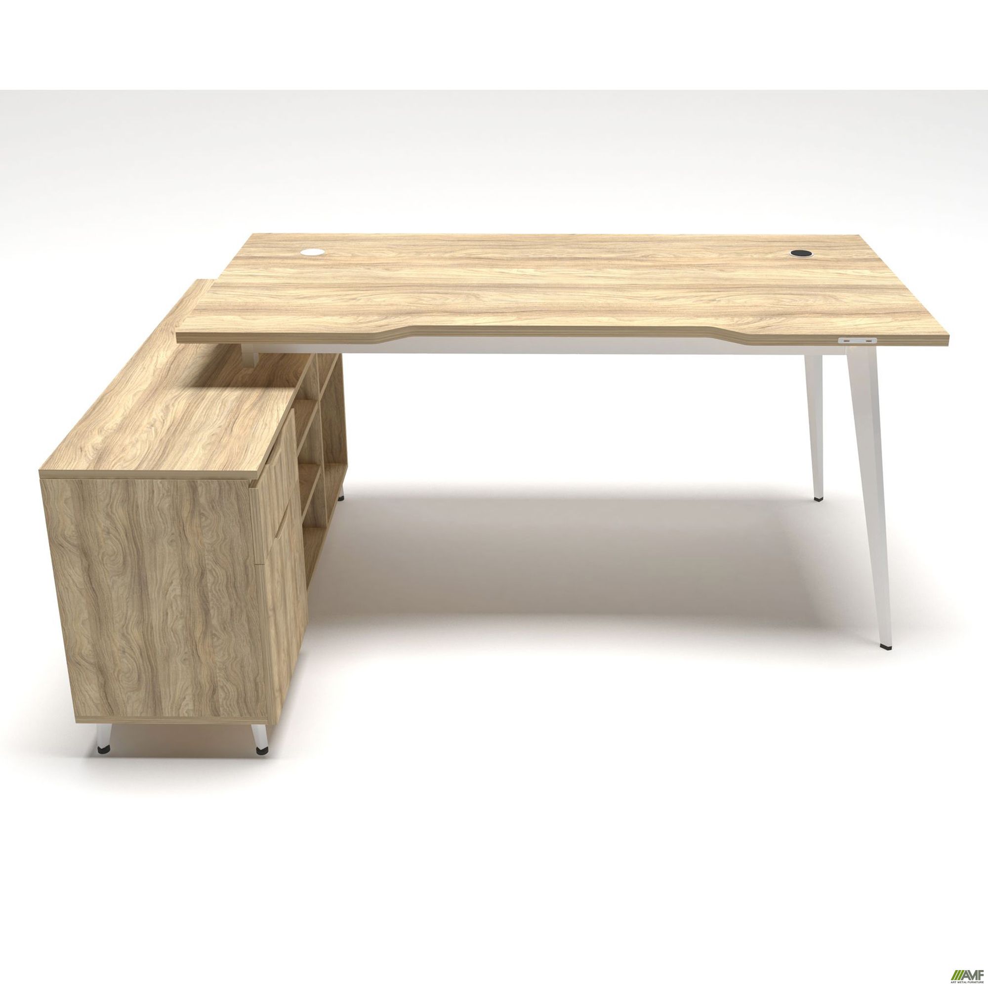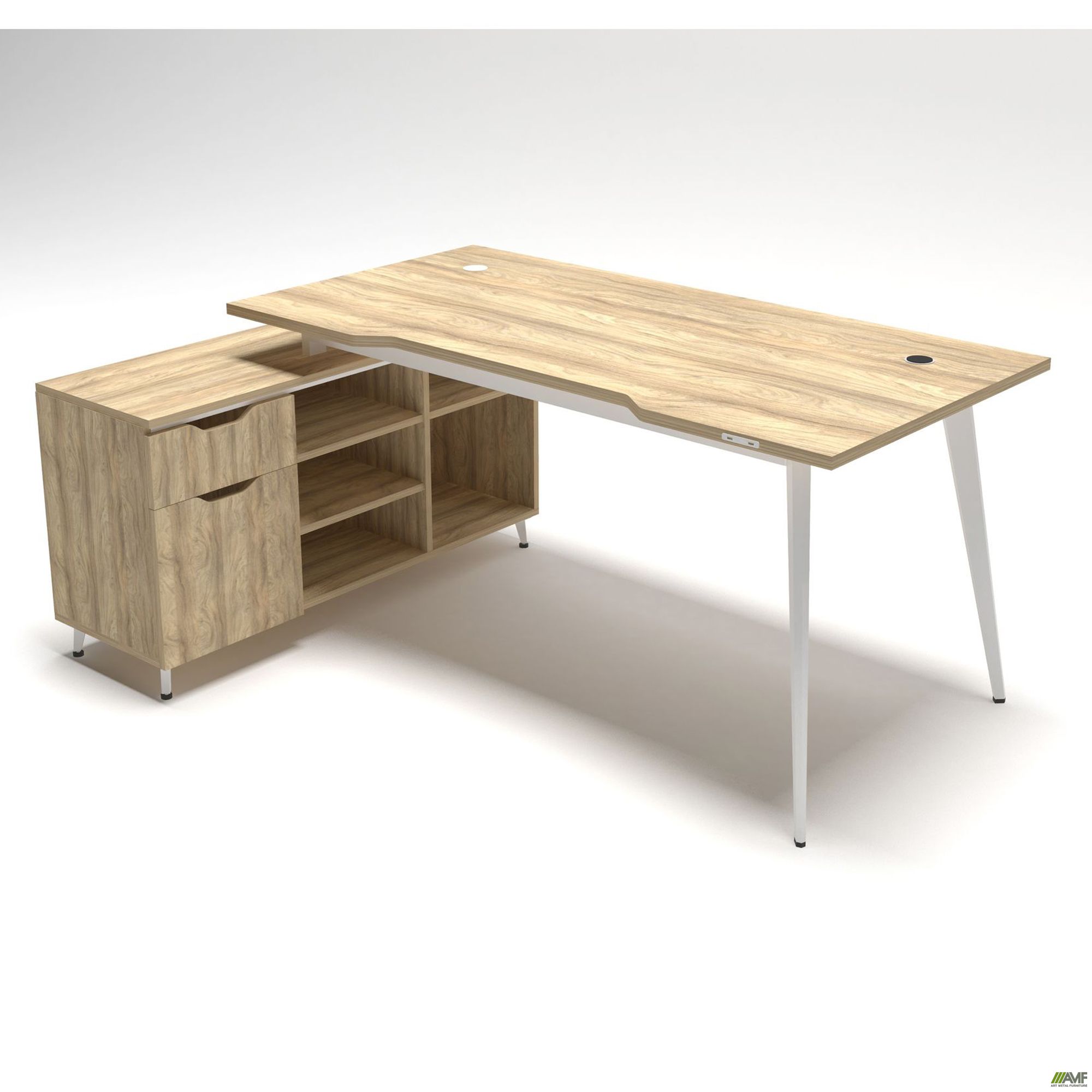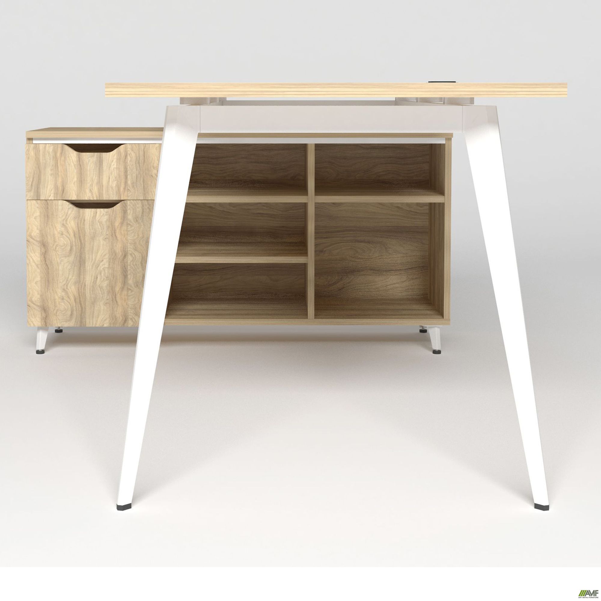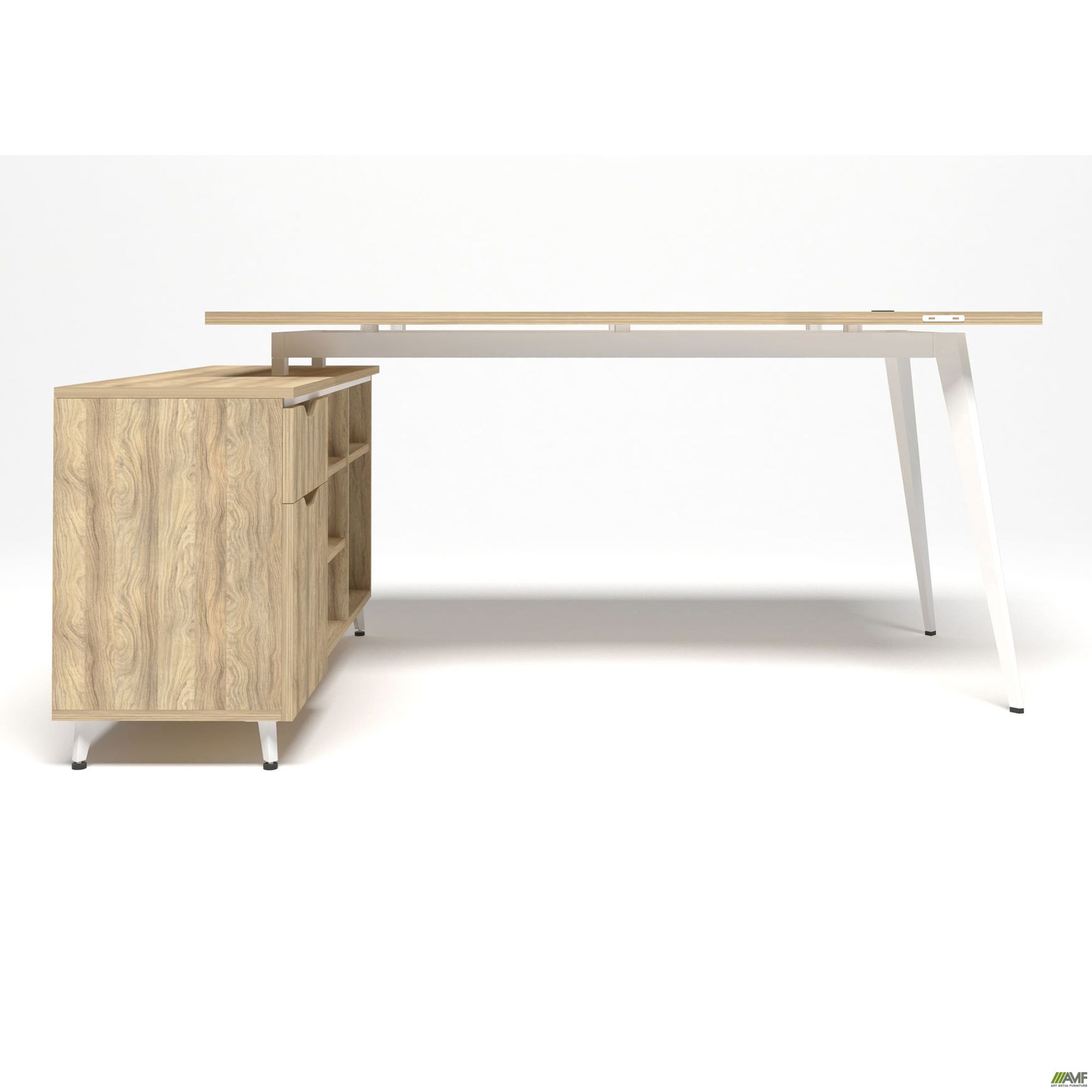 Дельта – это современная и стильная линейка созданная для нестандартных офисных пространств. Для того чтобы оборудовать стильные зоны за счет неординарных элементов в данной линейке используются навесные системы и модули позволяющие делать различные комбинации. Особенностью линейки Дельта является гармоничное повторение трапециевидных вырезов на ручках тумб, шкафов и навесных элементов. Линейка представлена в дизайнерском цвете Блеквуд ячменный.