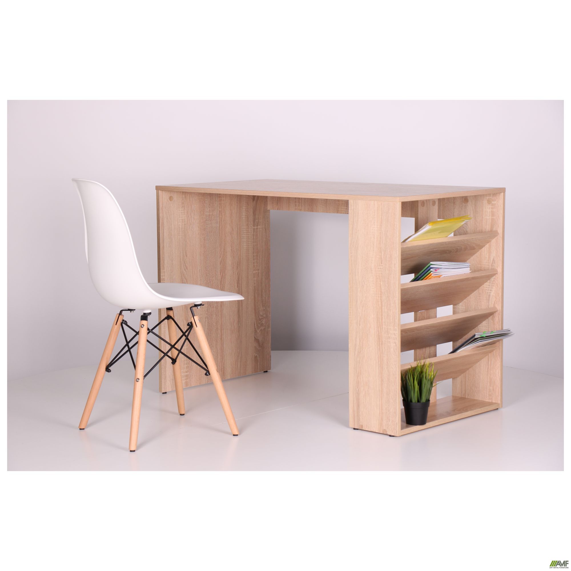 Компьютерный стол Gravity GR-101 производителя AMF, открывает линейку недорогих и универсальных столов серии Gravity. Известно что Гравитация - свойство тел с массой притягиваться одно к другому. Компьютерный стол Gravity притягивает взгляд покупателей и готов заполнить вакуум Вашего изысканного интерьера. Столешница размером 1100x600 мм и воздушная форма модели с функциональными полками, позволяют достичь оптимального соотношения между большим рабочим пространством, площадью полок и объемом пространства, который занимает компьютерный стол. Стол производится в двух модификациях L и R, где полки расположены соответственно с левой или правой стороны стола. Нетривиально расположенные полки придают компьютерному столу Gravity GR-101 особенную изюминку. Компьютерный стол Gravity относится к классическим вариантам столов. Основное его преимущество – комфорт и универсальность, стол идеально подходит как для небольшой комнаты так и офиса. Вместе с экономией пространства производитель позаботился о доступной цене. Стол изготовлен из ДСП толщиной 16 мм и окромкован 2 мм ПВХ кромкой, которая поможет продлить срок службы стола.