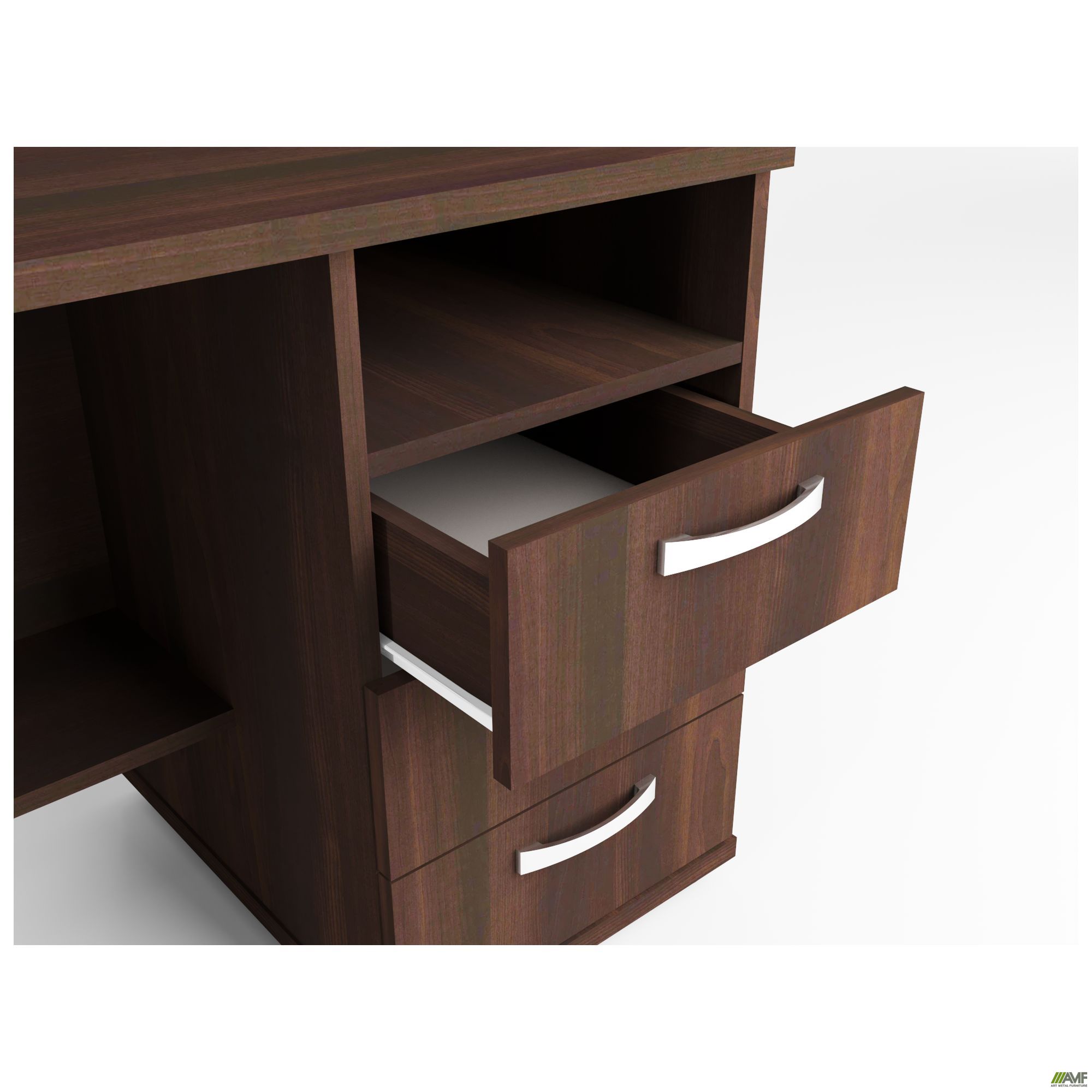 ДСП – древесно-стружечная плита один из самых популярных материалов в изготовлении корпусной мебели, обладает рядом преимуществ таких как низкая стоимость, красивый и разнообразный внешний вид (в зависимости от вида облицовки), прочность конструкции, устойчивость к влаге и деформации. Как известно ДСП изготавливают из стружки и опилок, пропитанных формальдегидной смолой для лучшего скрепления при высокой температуре. Её можно просто и быстро обрабатывать при изготовлении изделий. Самым современным видом этого материала является ламинированная ДСП (ЛДСП), именно она используется при изготовлении мебели AMF.