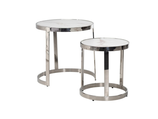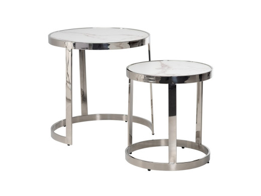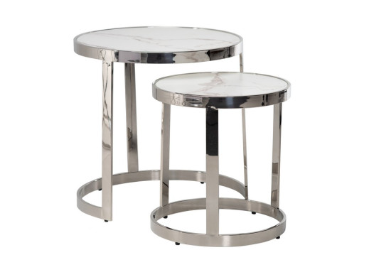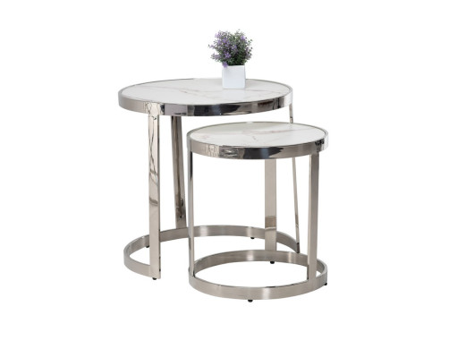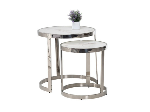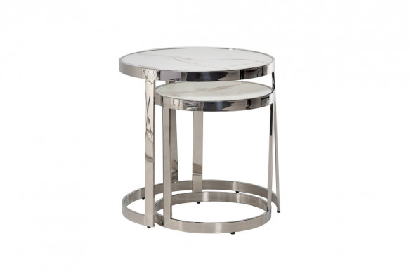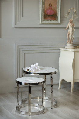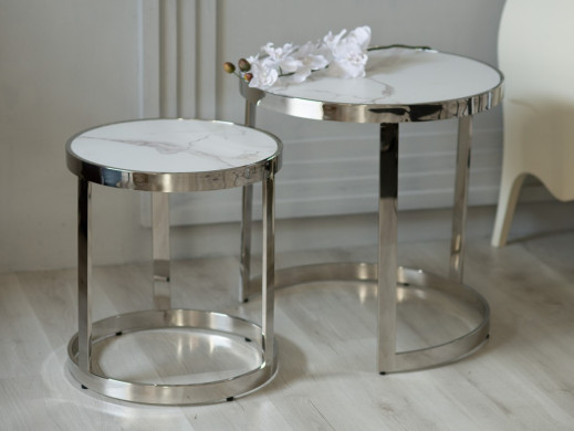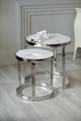 Комплект журнальных столов CI-1 белый мрамор + cеребро
