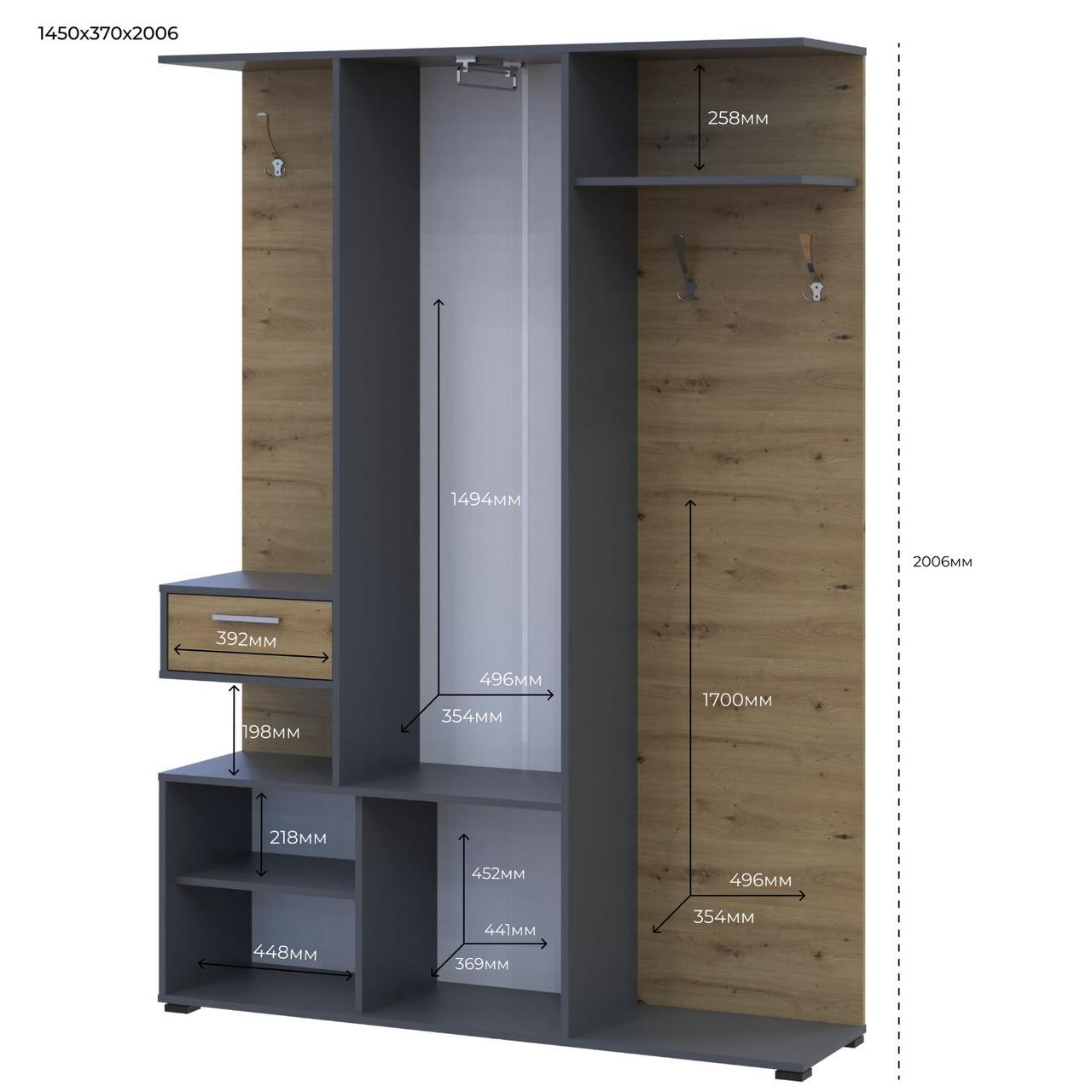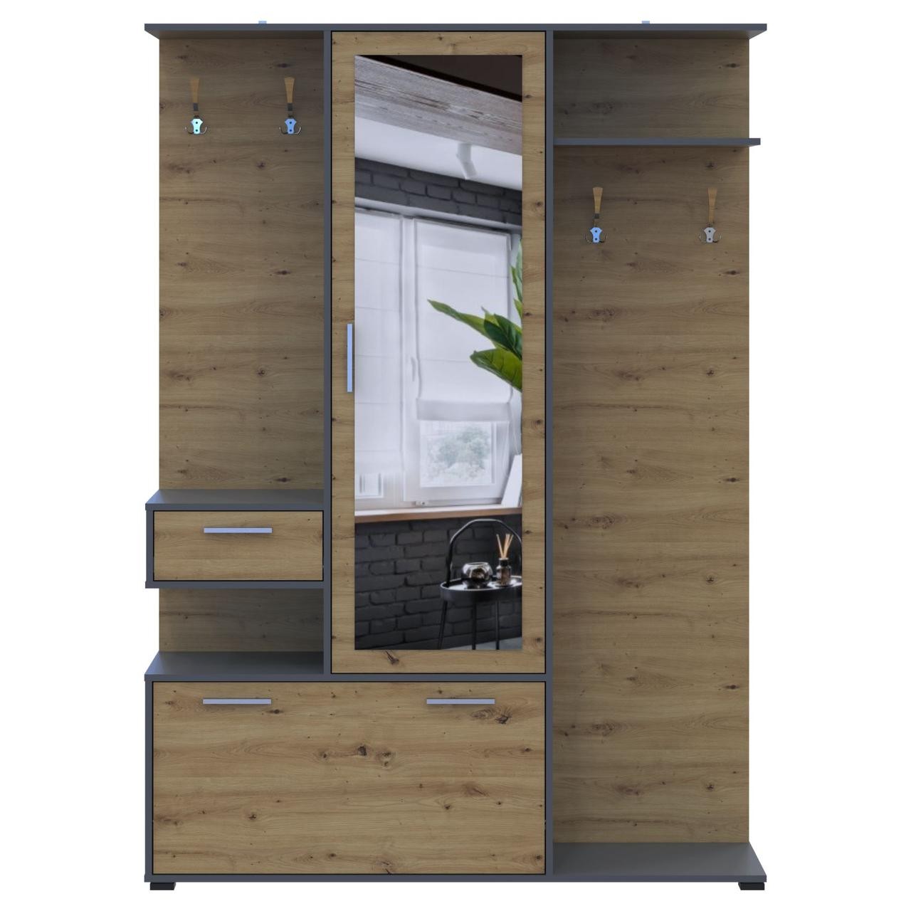 Прихожая Doros Финч Графит / Дуб Артизан 145х37х202 (44900220)