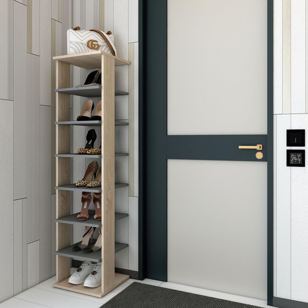 Полочка для обуви Doros Паоло Дуб Сонома/Графит 38.4х38.4х153.4 (41516042)