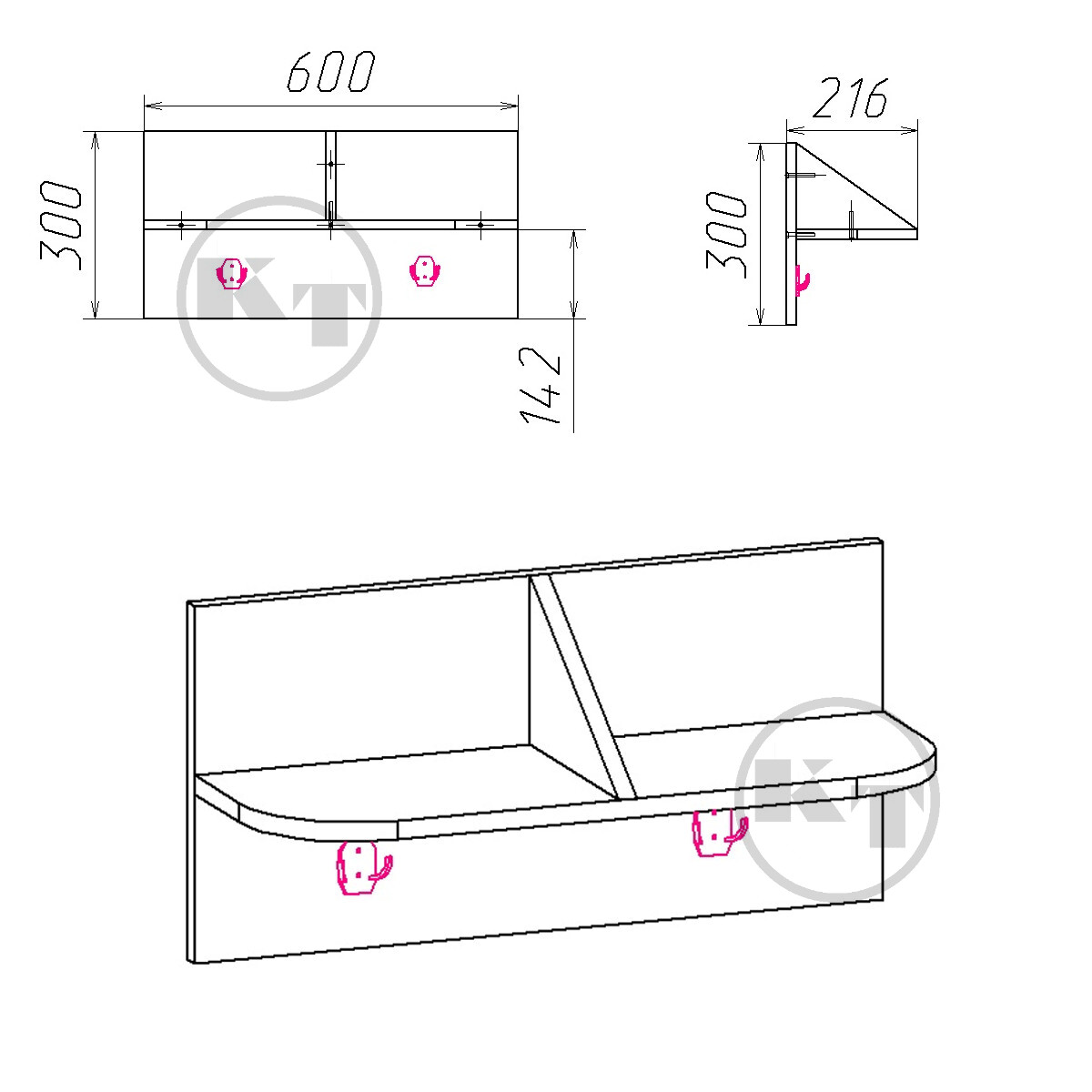 600х310х32 мм.