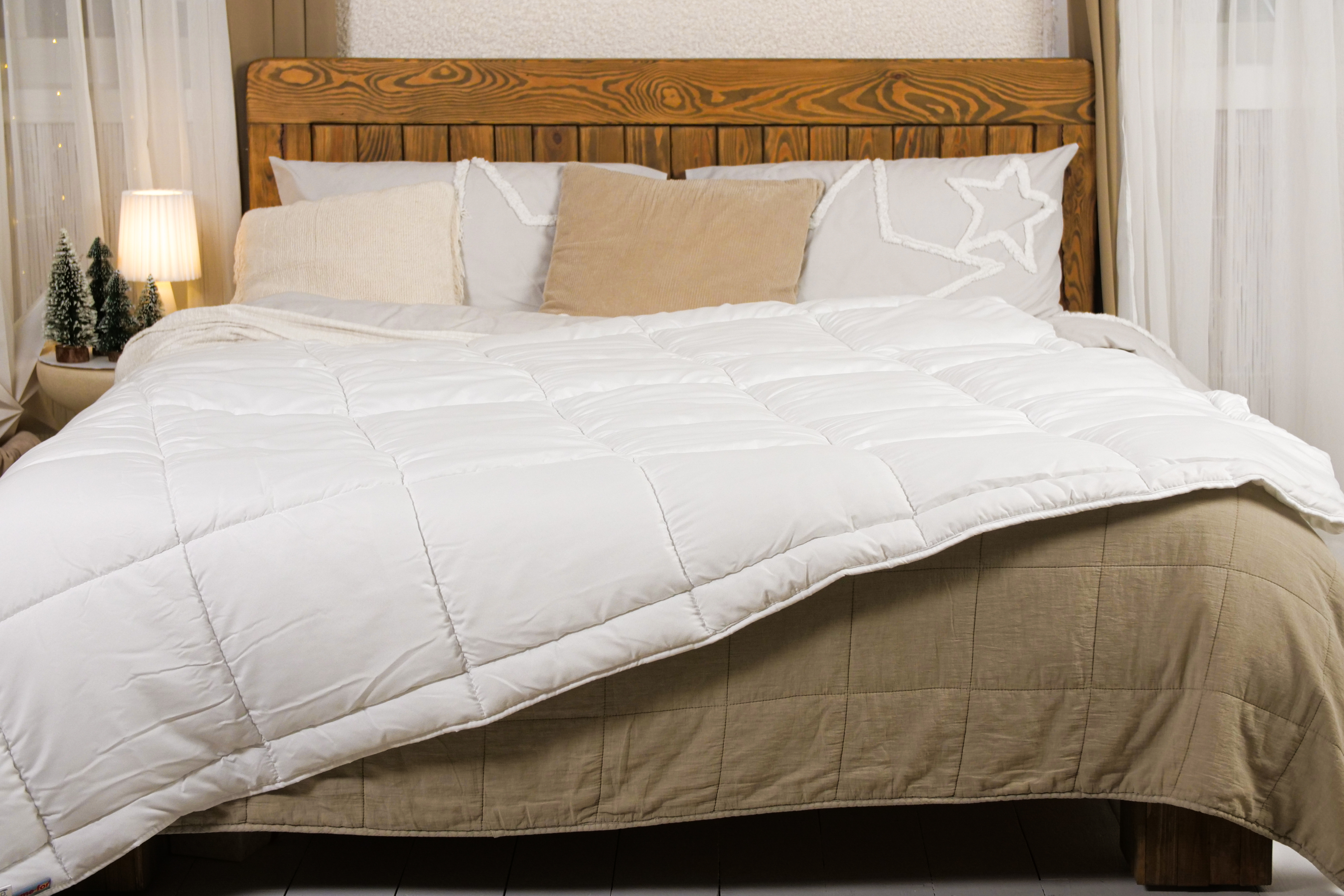 Силиконизированный наполнитель отлично сохраняет тепло, а лишняя влага, которая образуется во время сна, легко выводится, позволяя одеялу «дышать». Чехол из микрофибры является гипоаллергенным и имеет приятный на ощупь эффект «бархата».