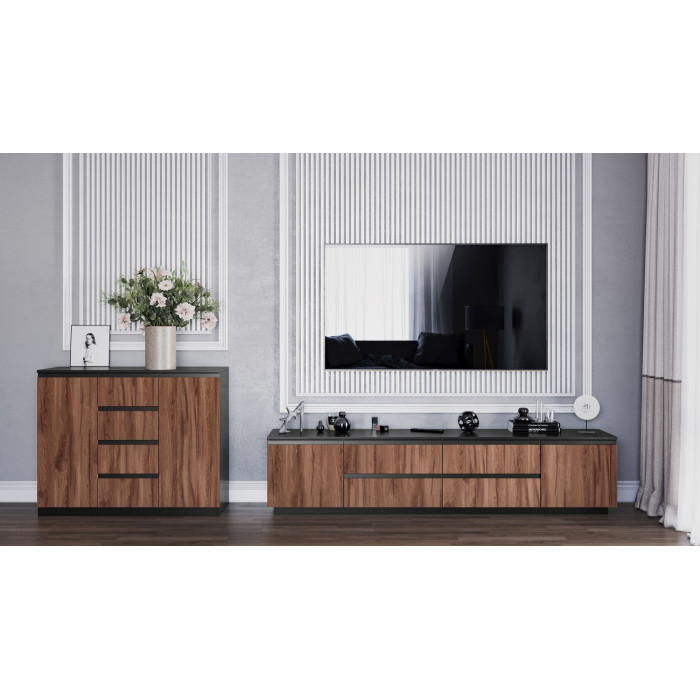 Ціна на сайті вказана за комплектацію: дві тумби, комод 3Ш+3Ш, шафа 3Д2Ш.